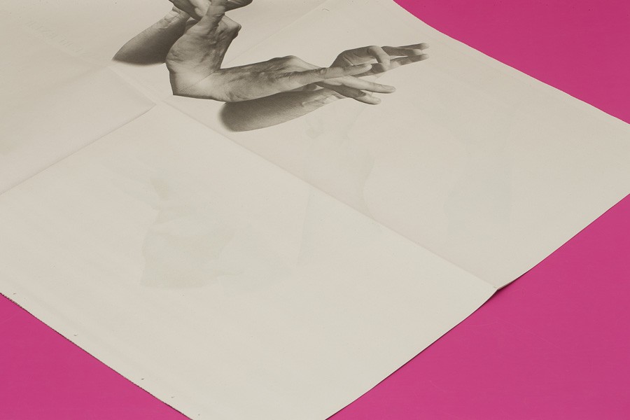 Susanne Bürner’s work presents the hands of an orchestra conductor. The positions of the hands interfere with new reading gestures in a stunning variation on the materiality of the newspaper format.